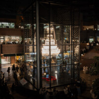 高さ約5メートル、幅約3メートル。クリスタルパーツの数は8,000ピースを超え、ライトの数は250灯。この巨大な芸術作品は、フランスのバカラ村から海を越えて運ばれてきます。