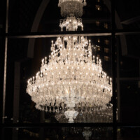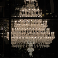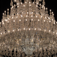 シャンデリアは防護用のガラスケースに収められており、直接触れることはできません。