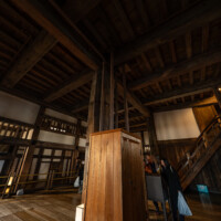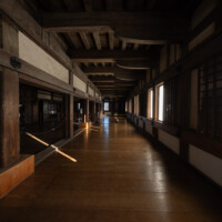そして、姫路城の真価は内部に入ってこそ実感できる。内部は落ち着いた薄暗さの中に灯りが点在し、磨き込まれた床板がわずかな光を映している。現代的な装飾は少なく、巨大な木組みと梁がむき出しのまま姿を見せる。