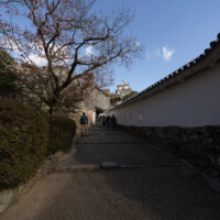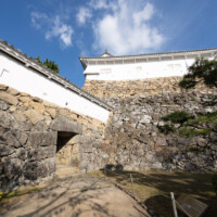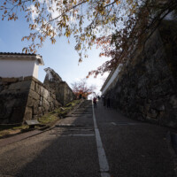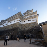 石垣もまた、姫路城の美を支える重要な要素である。下部は大きく張り出し、上部に向かって反り上がる「扇の勾配」は、敵兵が登りにくい防御構造であると同時に、柔らかな曲線を生み出し造形的な美をも備える。広大な曲輪と迷路のように入り組んだ道筋は、味方を守り、敵を惑わせる合理的設計であり、「入れども出られず」の異名を裏付けている。