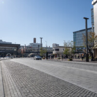 1945年の空襲で駅舎は一度焼失してしまいますが、1950年代の復興期に今のメインストリートである「大手前通り」が整備され、お城を一直線に望むことができます。