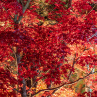 宗匠、これは宝厳院の紅葉の「真髄」にございます! 見てくだされ、この圧倒的な黄金と紅の質量感を。ただの葉ではなく、一葉一葉が夜の闇を押し返し、空間に光の厚みを作っておるのです。