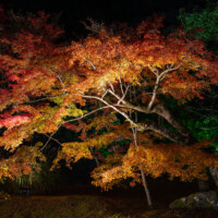 秋の夜間特別拝観(紅葉ライトアップ)は例年11月中旬から12月上旬にかけて開催。嵐山エリアで紅葉のライトアップを実施している場所は意外に少なく、宝厳院はその希少な存在として毎年多くの人が訪れます。