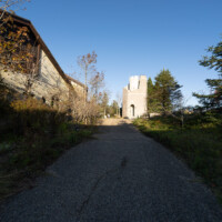 右奥に見える石造りの塔は、人気の展望ポイントである「見晴らしの塔」。