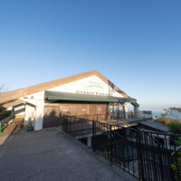 六甲ガーデンテラスは六甲ケーブル「六甲山上駅」から「六甲山上バス」に乗り換え、「六甲ガーデンテラス」バス停で下車してすぐです。右奥に見えるドーム状の建物は自然体感展望台 六甲枝垂れ。